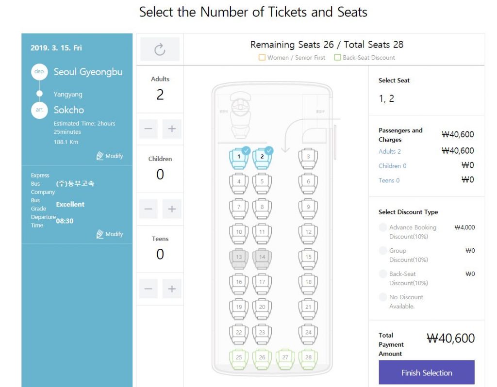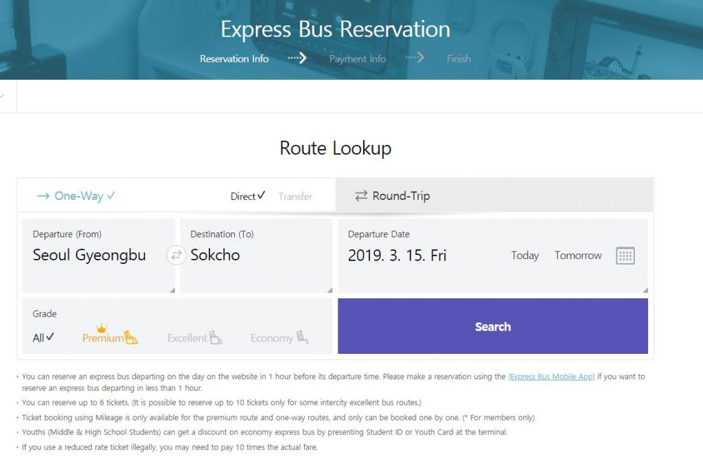 Je pars prochainement en Corée du Sud avec mon compagne. Nous souhaiterions pouvoir acheter à l’avance nos billets de bus Express.