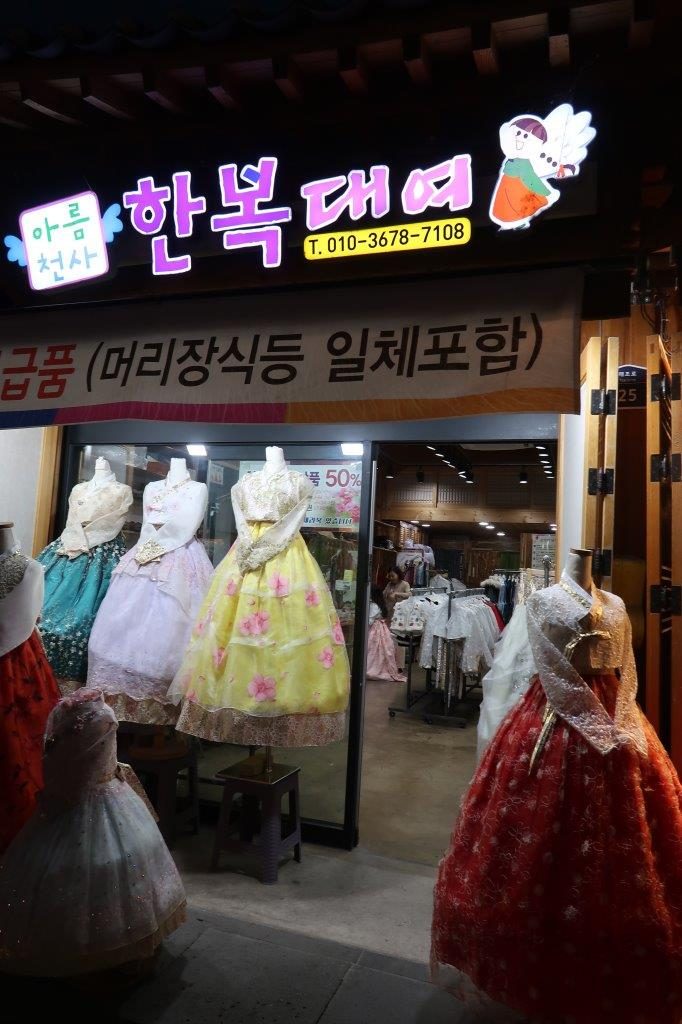 Il y a des boutiques de location de Hanboks à peu près tous les 2 mètres.