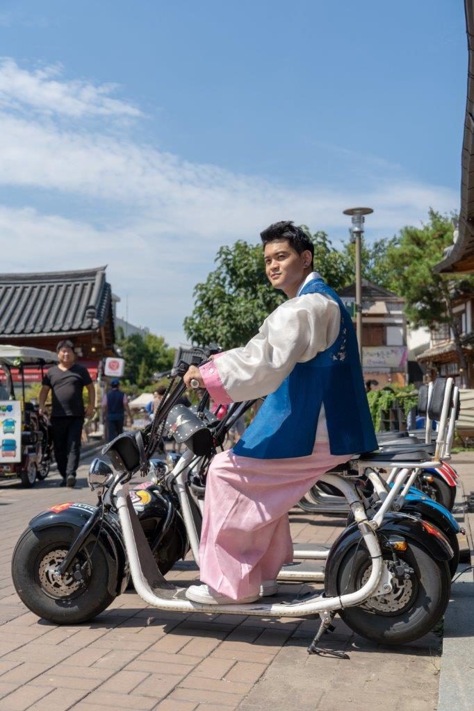 Et si vous voulez, vous pouvez, bien que ça ne sert pas à grand chose, un Hanbok et une mobylette en même temps comme cet individu qui fait son malin :