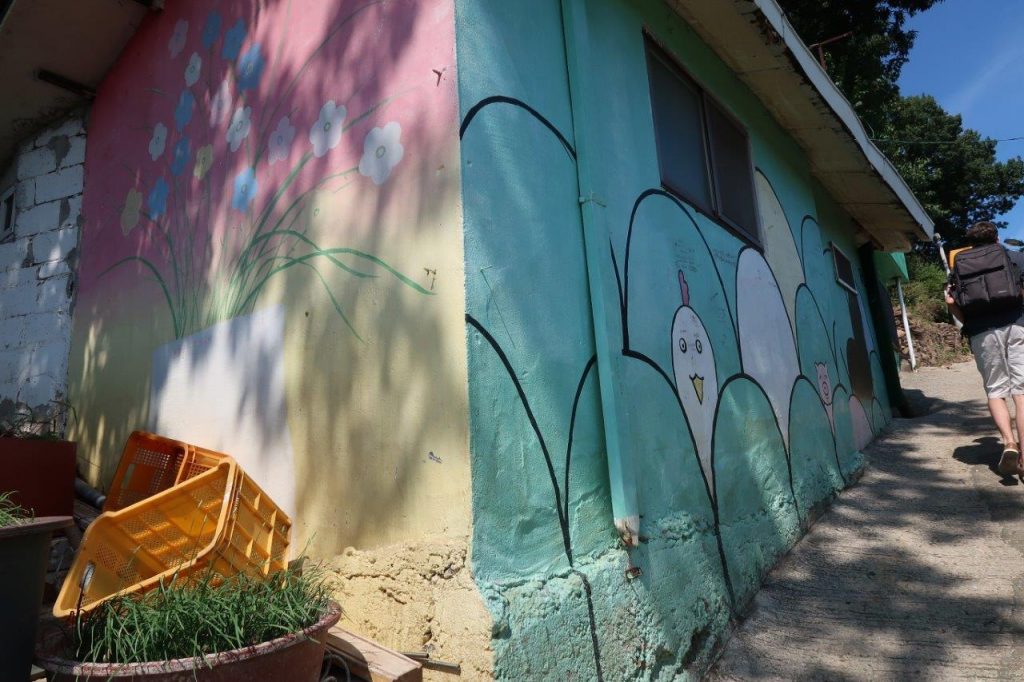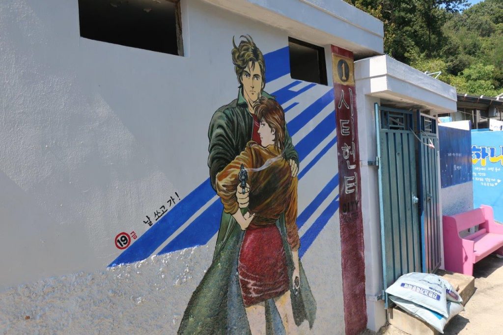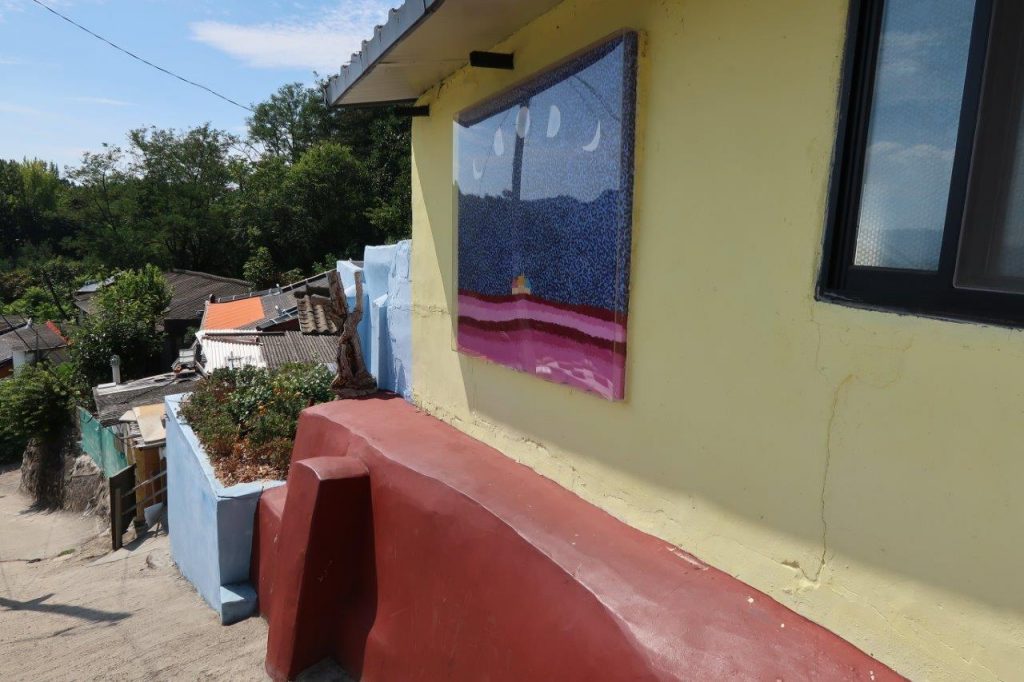 A quelques minutes à pied du village, il y a un village d’un autre genre. J’ai l’impression qu’il y a ce genre de villages muraux dans chaque ville de Corée ( J’en avais déjà vu un à Yeosu )