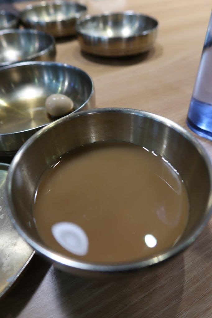 Une des spécialités de Jeonju est son alcool le Moju qui est fait à base de Makgeolli mélangé avec de la cannelle, du gingembre, de la poire et d’autres arômes orientales. J’ai beaucoup aimé, c’était vraiment très bon au point où je me suis pris quelques bouteilles en stock pour Séoul…