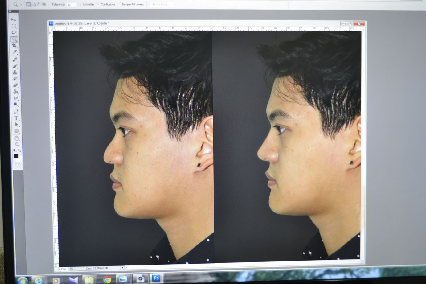 Ensuite, il prend des photos de mon visage sous différents profils et les met sur Photoshop: