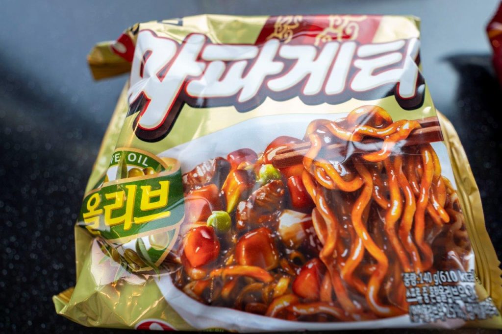 Rendu populaire par le film Parasite , le Jjapaguri est un plat très simple qui peut se préparer en quelques minutes. Il est composé de deux plats instantanés différents : le Neoguri (너구리) et le Jjapagetti (짜파게티). Suite à la sortie du film, les supermarchés ont poussé le coup marketing en disposant les deux paquets de nouilles ensembles dans les rayons.