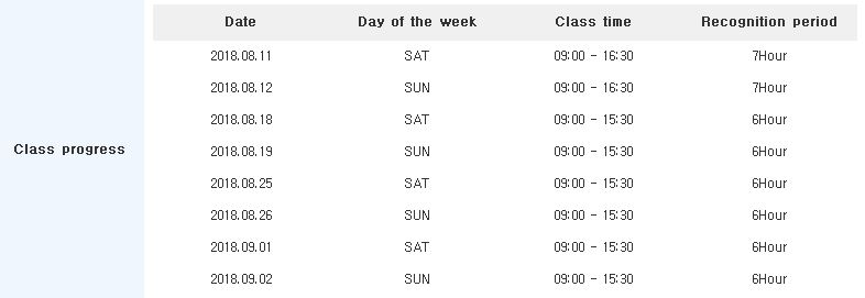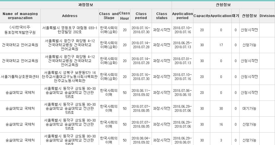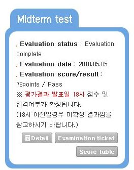 Avant d’être affecté à une classe, il faudra passer un test d’évaluation de niveau. Pour vous inscrire, il faut vous rendre sur votre page personnelle après avoir créé votre compte. Il y a 4 sessions de tests de niveau par an, il faut donc bien surveiller les annonces des dates d’inscription. Sur la version du site en date du 29 Juin, il y a un cadre 사전평가 avec les dates d’inscription. Vous avez jusqu’au 24 Juillet 2018 pour vous inscrire pour cette session :