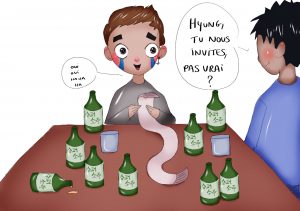 Les effectifs étaient composés en gros d’1/3 de Vietnamiens, 1/3 de Chinois et 1/3 du reste du monde. Et qu’est-ce qu’ils étaient bons! Je pense que je devais être le plus nul de la classe. Une chose qui m’a beaucoup touché pendant ces classes c’était d’avoir vu à quel point les Vietnamiens bossaient vraiment dur. Même si ils n’avaient pas de temps, certains emmenaient même leur enfant en cours. Car contrairement à moi qui vit en Corée par choix, parce que c’est mon “Korean dream”, les vietnamiens que j’ai connus dans cette classe vivent en Corée pour avoir une meilleur vie…