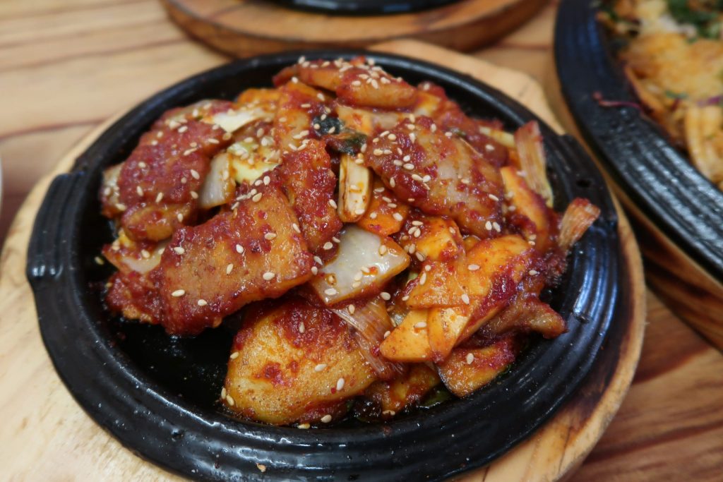 Si vous aimez les plats relevés, le dakgalbi (poulet sauté aux légumes et à la sauce gochujang), le jeyuk bokkeum (porc épicé sauté) ou encore le tteokbokki (gâteaux de riz épicés en sauce gochujang), seront au rendez-vous.