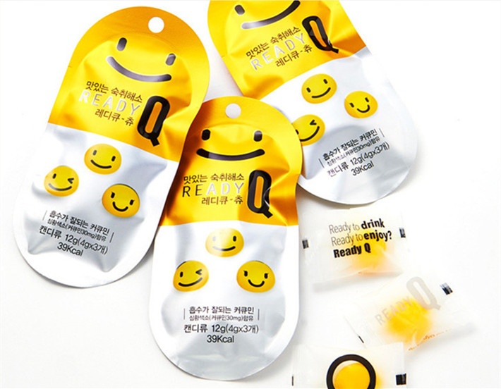 Ready Q-Chew est une sorte de bonbon sous forme de gelée au goût de mangue à prendre avant ou pendant que vous buvez de l’alcool. Ce bonbon “magique” contient des extraits de Curcuma qui est une plante originaire d’Inde et de Malaisie connue pour ses propriétés antioxydantes et anti-inflammatoires. Ce bonbon anti-gueule de bois a été très popularisé en Chine via les SNS et c’est pour ça que si vous vous promenez à Myeongdong, vous verrez pleins de chinois les acheter comme des petits pains.