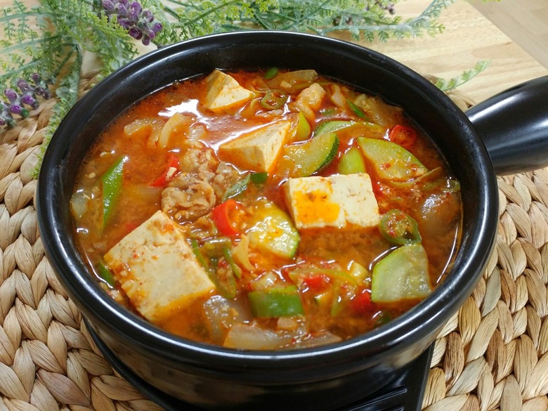 Doenjang-jjigae (된장찌개): C’est une soupe un peu épicée de pâte de soja fermenté, on y trouve du tofu et des légumes.