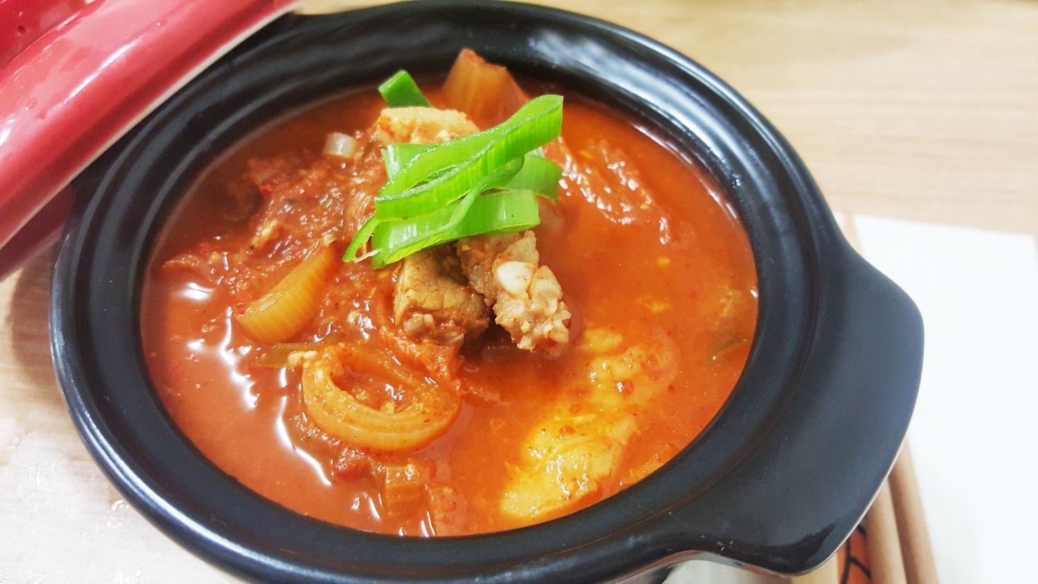 Kimchi-jjigae (김치찌개): C’est une soupe au Kimchi, au porc et au tofu qui est assez épicée.