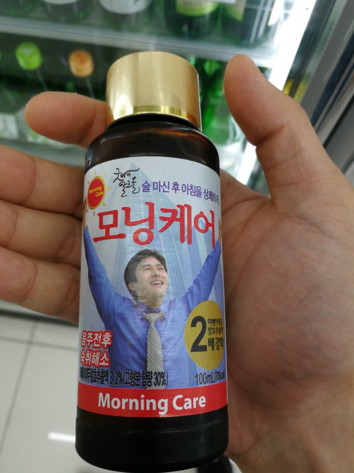 Morning Care (모닝케어) est une autre grande marque d’anti-gueule de bois qui contient des extraits de raisins de Chine, soja, guarana et d’autres ingrédients qui permettent de vous hydrater et protéger le foie.