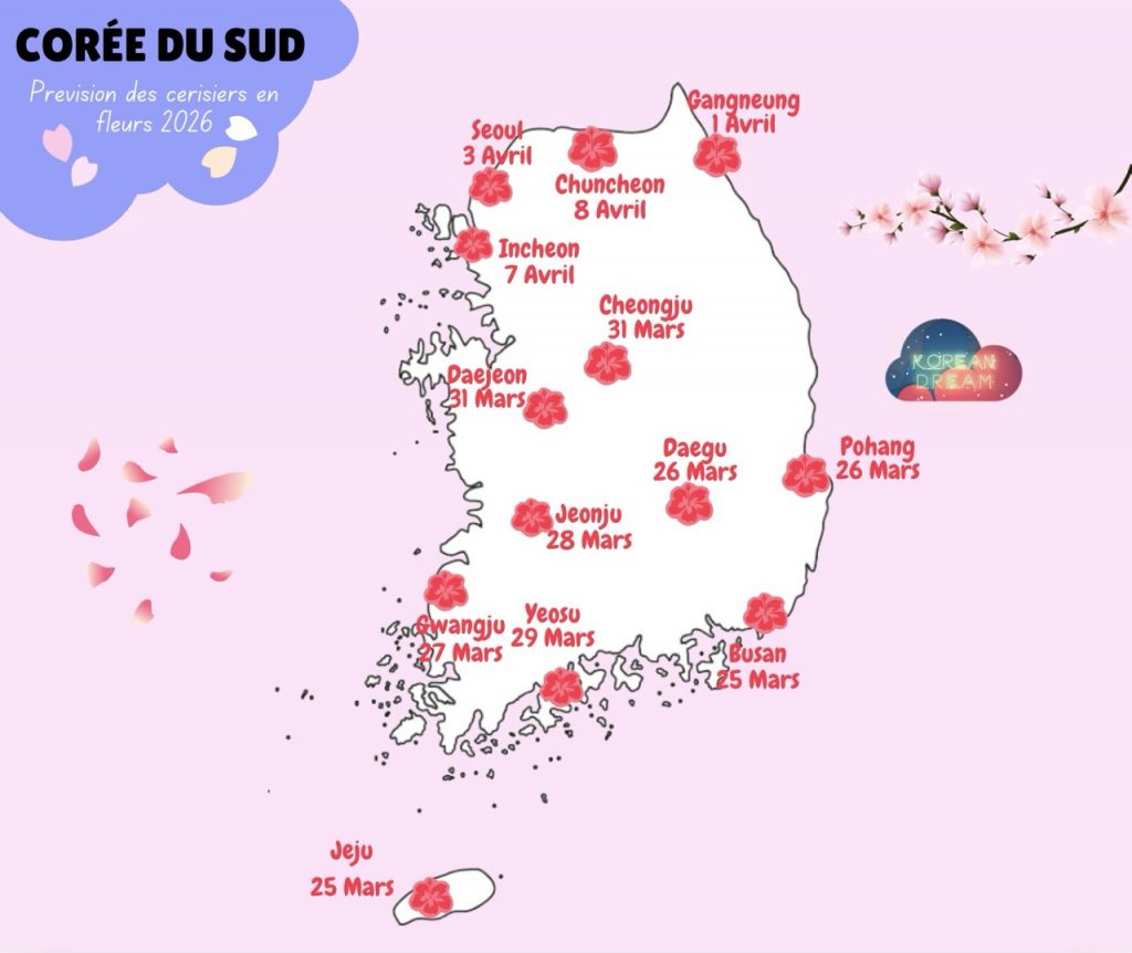 Quand est-ce que les cerisiers vont fleurir en 2026 à Séoul ?