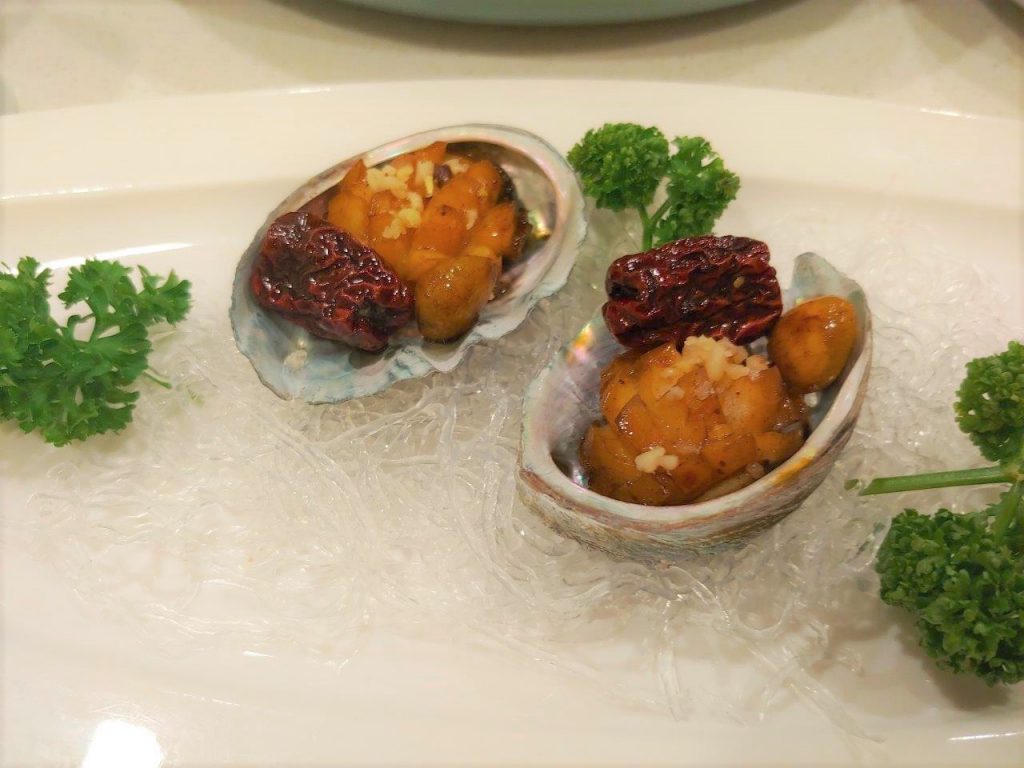 Après ce petit moment d’aventure, on revient avec quelque chose de plus sûr, de l’ormeaux grillées avec de la jujube et de la noix de ginkgo. Ah là rien que le nom fait rêver. J’aime beaucoup tout ce qui est un peu sucré-salé et le mariage de ces trois saveurs était juste parfait !