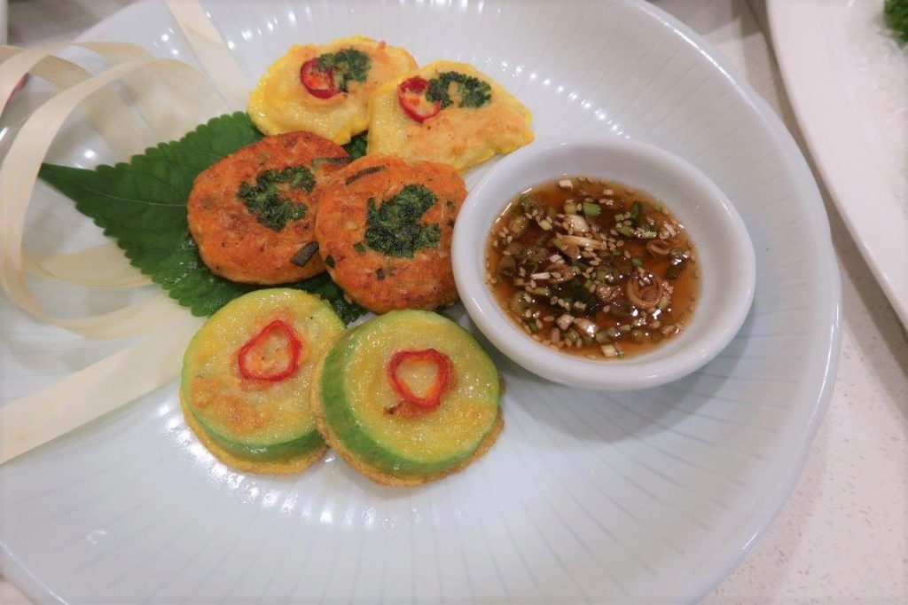 Voici ce qu’on appelle des Jeons qui sont une sorte de pancakes coréens. Celui en jaune avait du poisson à l’intérieur et celui du milieu à la crevette était incroyablement bon !