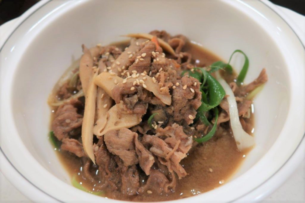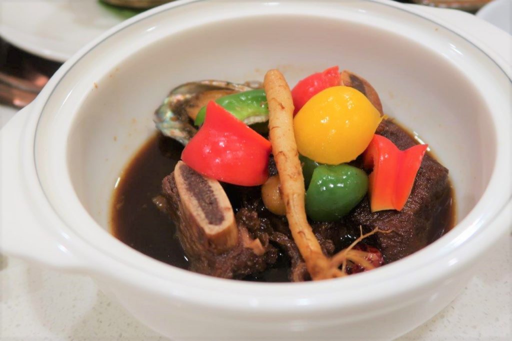 Le Galbijjim au ginseng est un plat fait à base de côtelettes de bœuf. La viande était vachement tendre, j’ai adoré.
