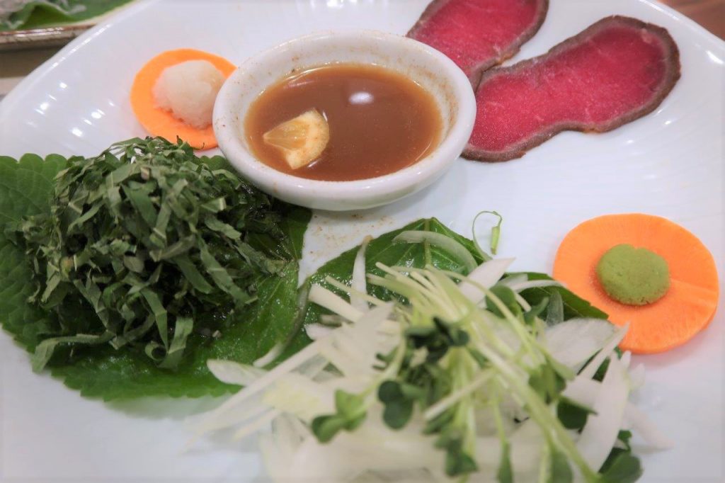 On enchaîne avec un plat classique qu’on connaît tous, une tranche de roast-beef avec une sauce de wasabi. La tranche était si joliment coupée et a fondue dans la bouche!