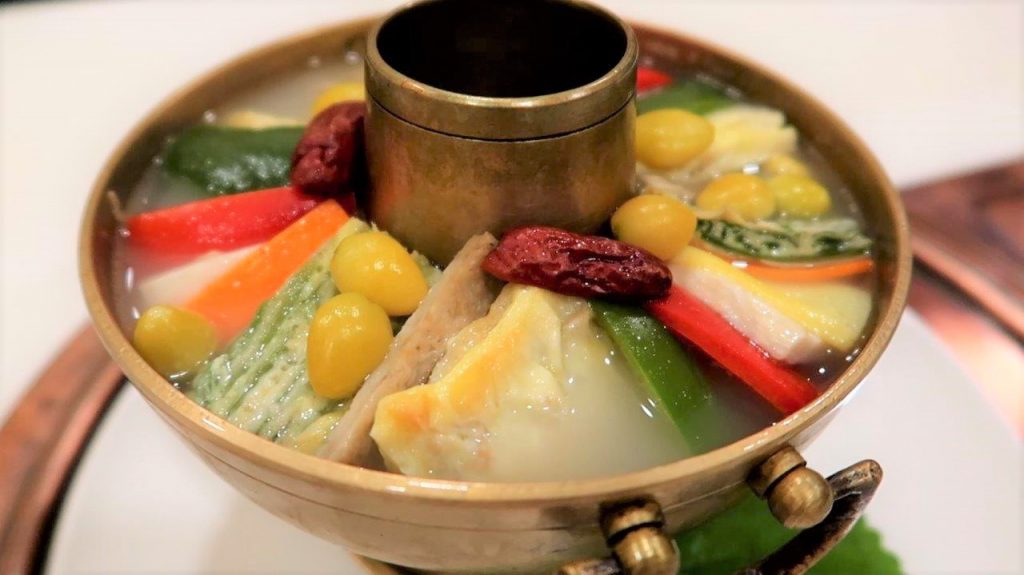 Pour finir ce round, j’ai eu droit à une soupe aux légumes et au ginseng dans ce pot au feu royal qui est réputé être très bon pour la santé. Le bouillon était léger et délicieux car il y avait un mélange subtile de goût de tous ces légumes.