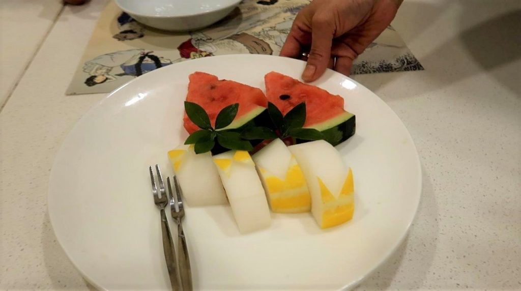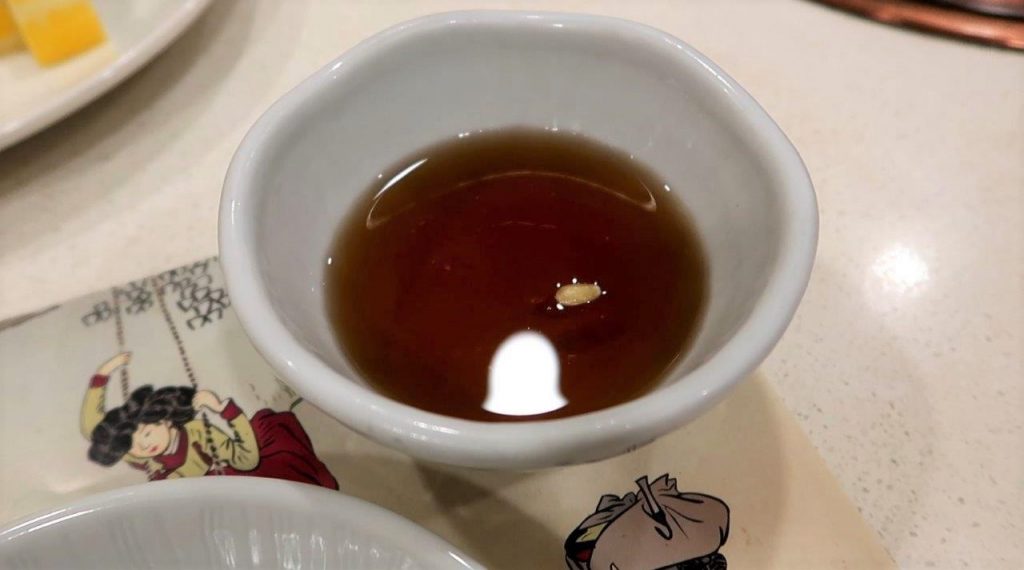 Et c’est la fin de ce repas coréen royal, c’est bon, il m’a mis KO. Bon, il me restait encore un peu place pour le dessert de fruit et l’excellent thé traditionnel à la prune :