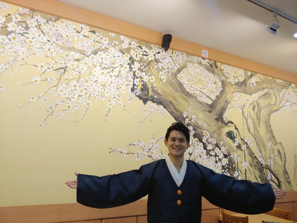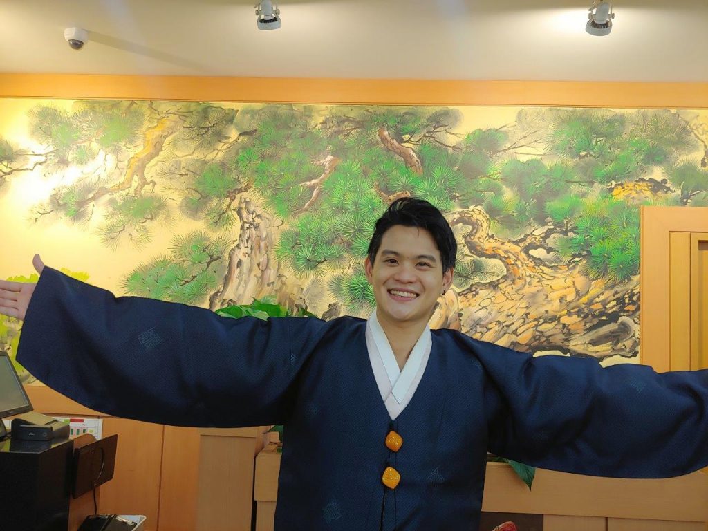 Mais ce n’est pas fini, vous aurez aussi droit (pour ceux qui le souhaitent seulement) à une expérience de Hanbok ( port du costume coréen traditionnel). Ils peuvent vous prêter un Hanbok puis vous pourrez prendre des photos sympas un peu partout dans le restaurant :
