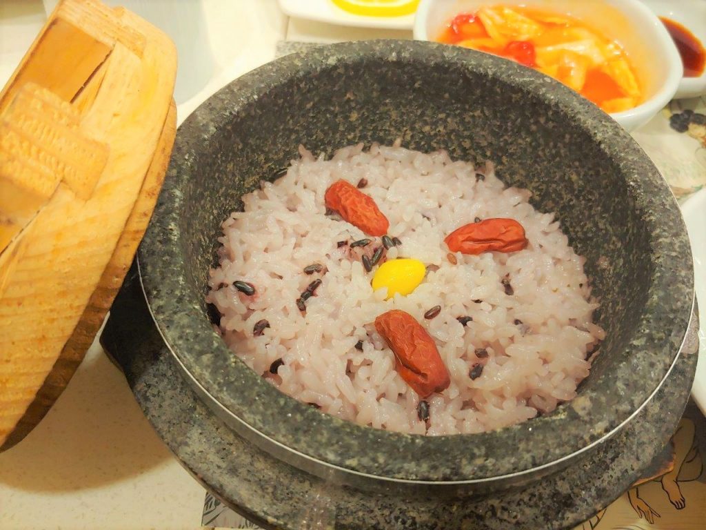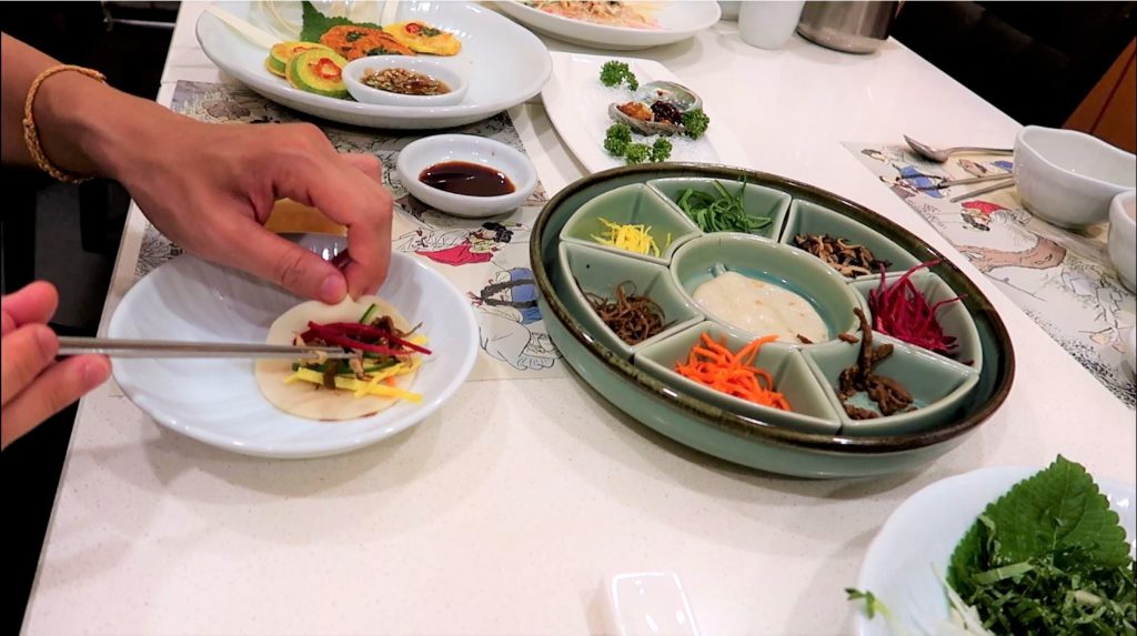 Comme son nom l’indique, il s’agit d’un style de repas coréen qui est directement inspiré de la cuisine traditionnelle coréenne consommé à la court royale lors de la Dynastie de Joseon entre 1392 et 1910. Une chose à savoir par rapport à la gastronomie royale coréenne c’est que ce n’est pas censé être épicé ! En effet, on a tendance à penser que la nourriture coréenne est très épicée alors qu’en fait à l’époque, ça ne l’était pas forcément. Les repas destinés au roi devaient êtres sains évidemment (sauf si vous vouliez faire un coup d’État bien sûr ). Les repas de la cour royale ne sont donc ni trop épicés ni trop salés et c’est bien ce que ce genre de restaurants proposent. Traditionnellement, il devait avoir une douzaine de plats accompagnés de soupe et de riz qui suivaient un ordre particulier.